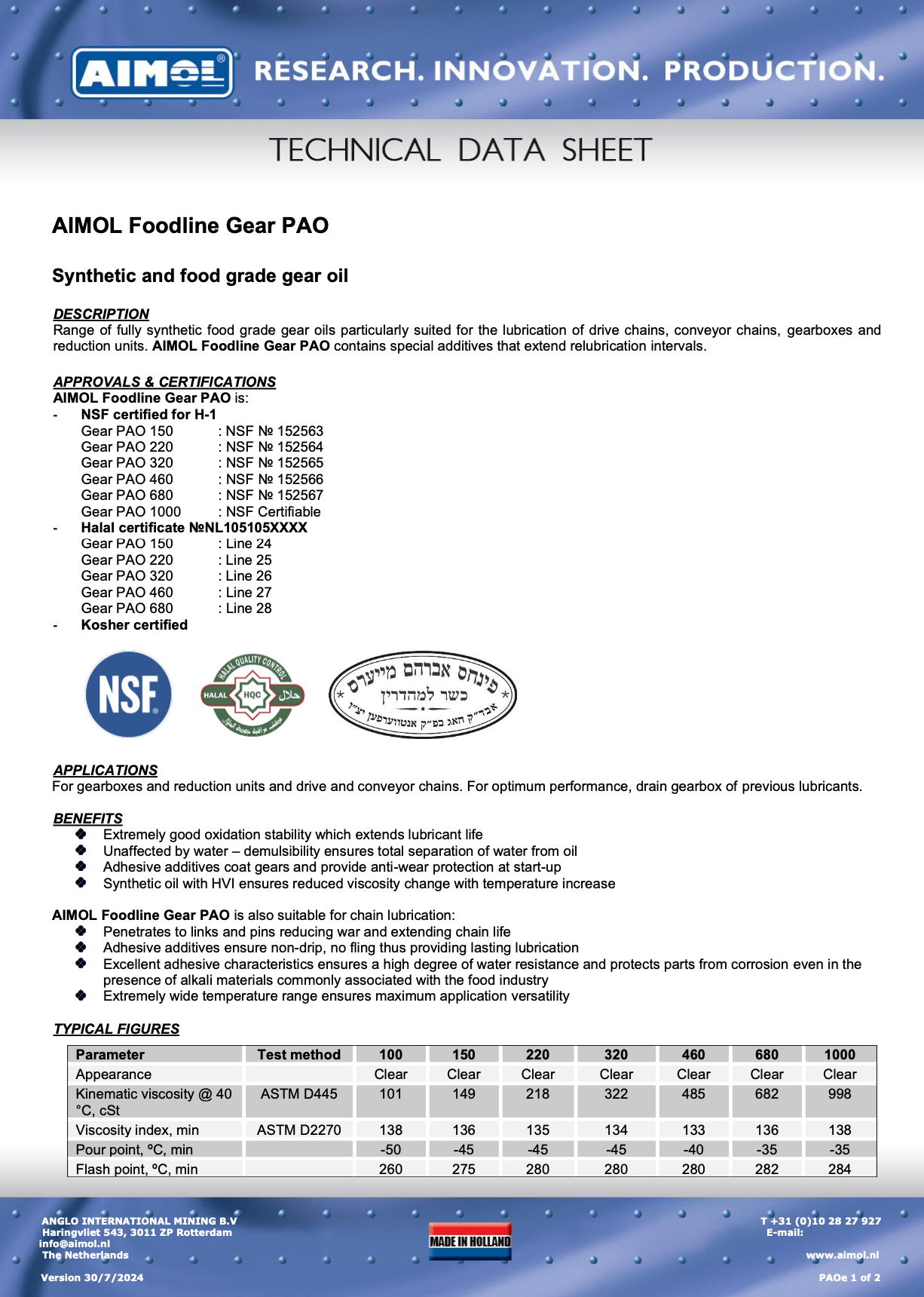 AIMOL FOODLINE GEAR PAO 220 Food Grade Products